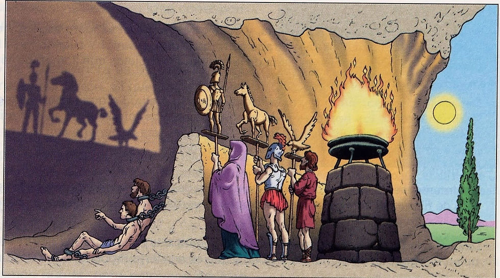 Еще несколько тысяч лет назад древнегреческий философ Платон (V–IV вв. до н. э.) предположил, что то, что мы видим, может быть вовсе не реальным. Известен его Миф о пещере. Это знаменитая аллегория, использованная философом в диалоге «Государство» для пояснения своего учения об идеях. По Платону, пещера олицетворяет собой чувственный мир, в котором живут люди. Подобно узникам пещеры, сидящим спиной к выходу, они полагают, будто благодаря органам чувств познаю́т истинную реальность. Однако такая жизнь — всего лишь иллюзия. Об истинном мире люди могут судить только по смутным теням на стене пещеры. На самом деле реальностью являются идеи вещей, которые душа вспоминает на основе своего духовного опыта.